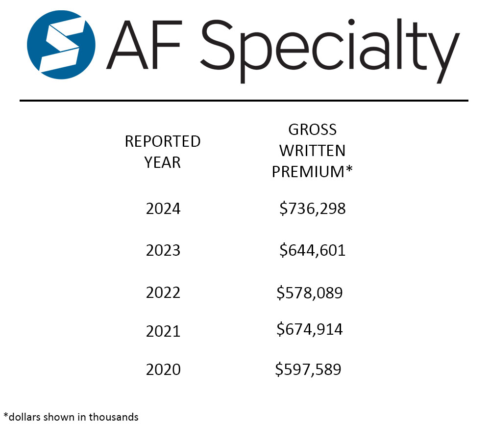 Our collective organization generated $3.3 billion in gross written premium in 2024, allowing us to fulfill our promises to our customers and agent partners. Below, you’ll find AF Specialty’s financial highlights. For more extensive financial information about AF Group and its brands, please access our annual reports on the AFGroup.com.